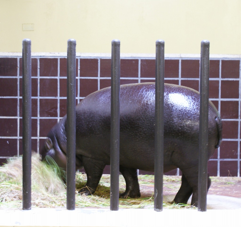 ご飯に夢中でこっち向いてくれない、コビトカバとか