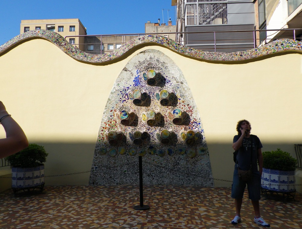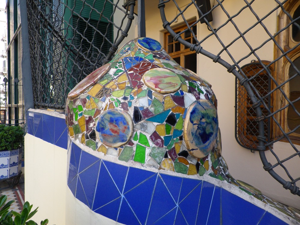 鉄条網の足元部分にはガウディお得意のモザイクが。