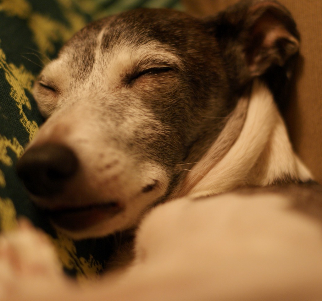 そして、寝るときはなんと。私の脚の間で寝てます…