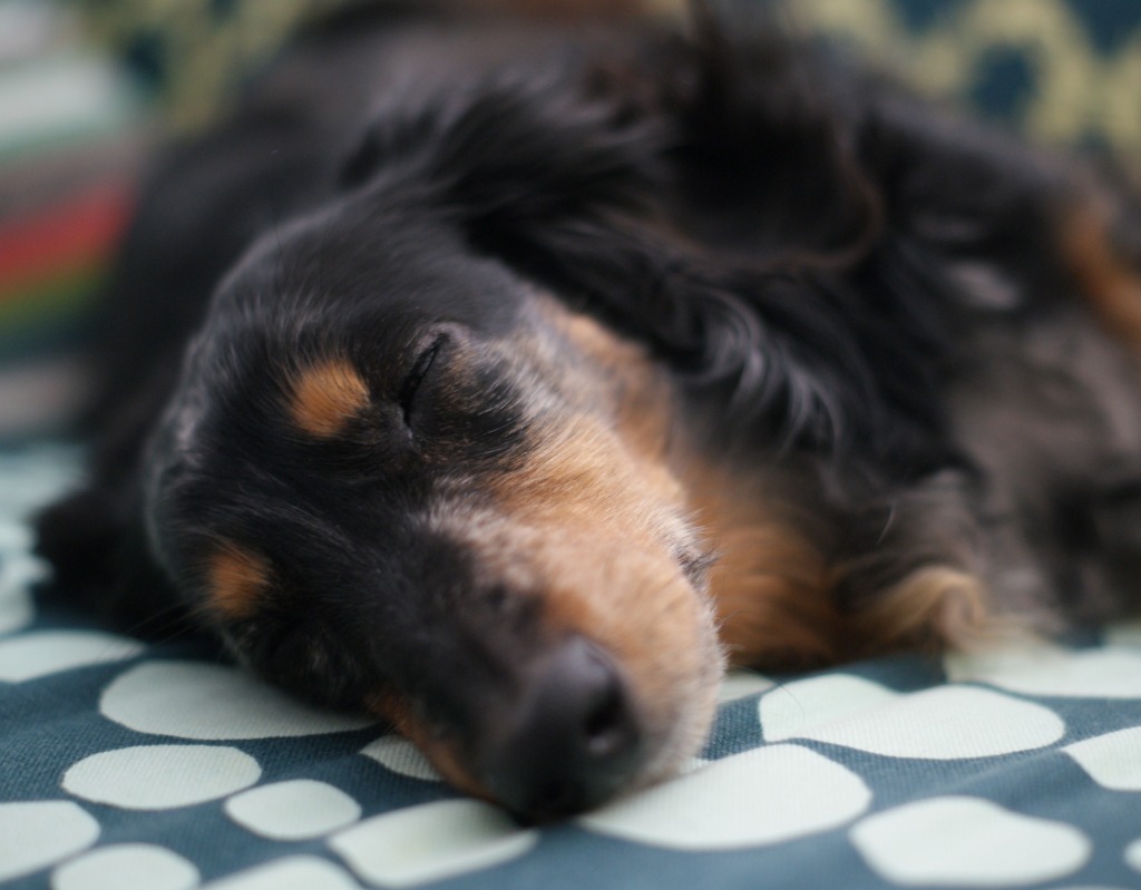 「エスくんはママの脚の間で寝る。」