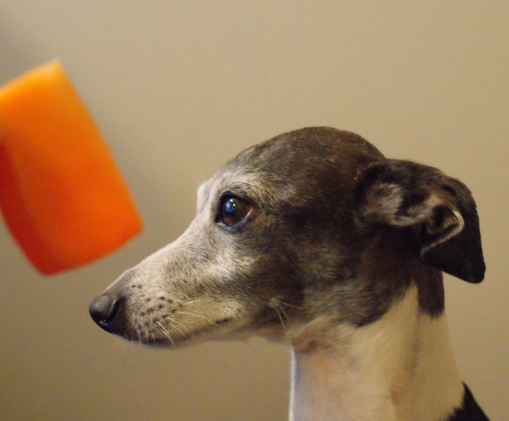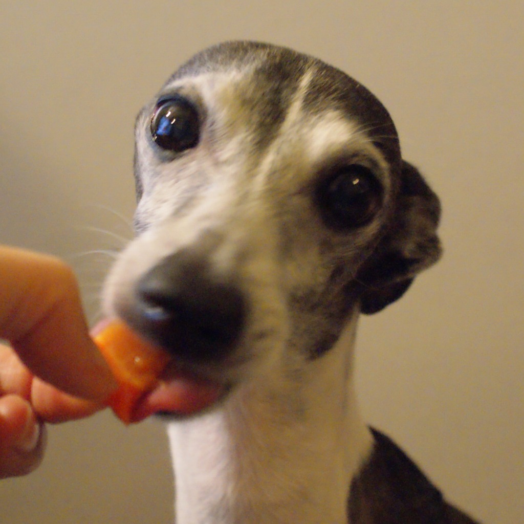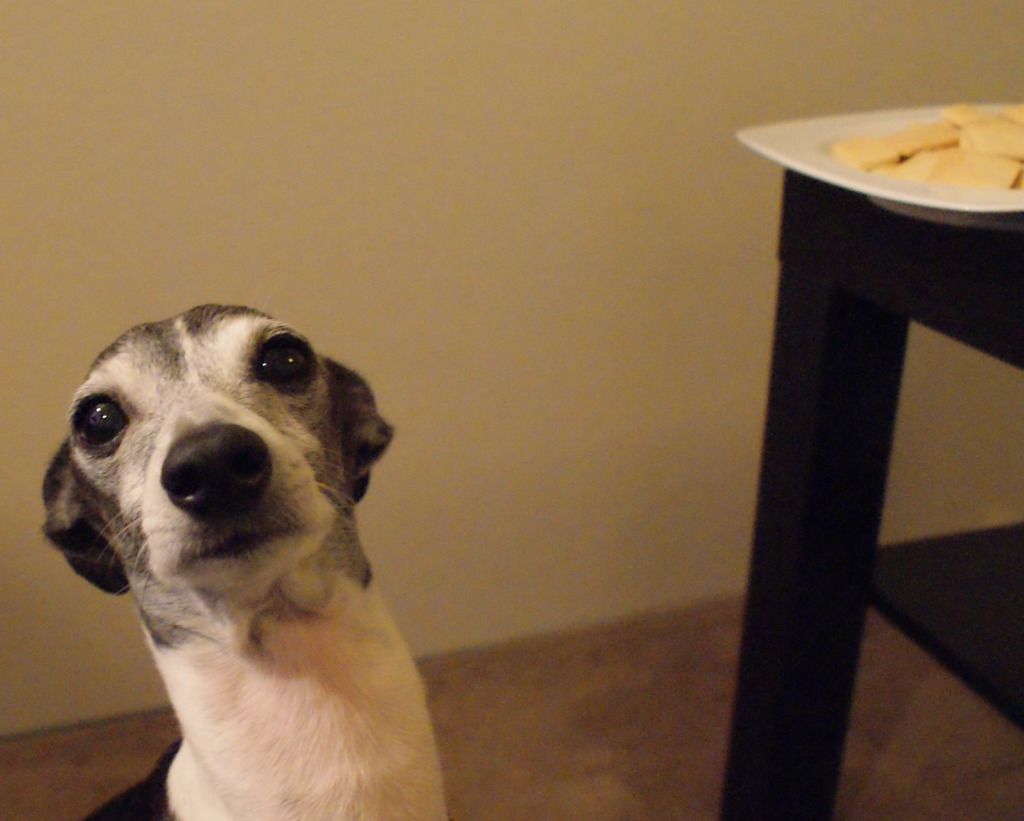 犬用クッキーだと勝手に思い込んでる犬。
