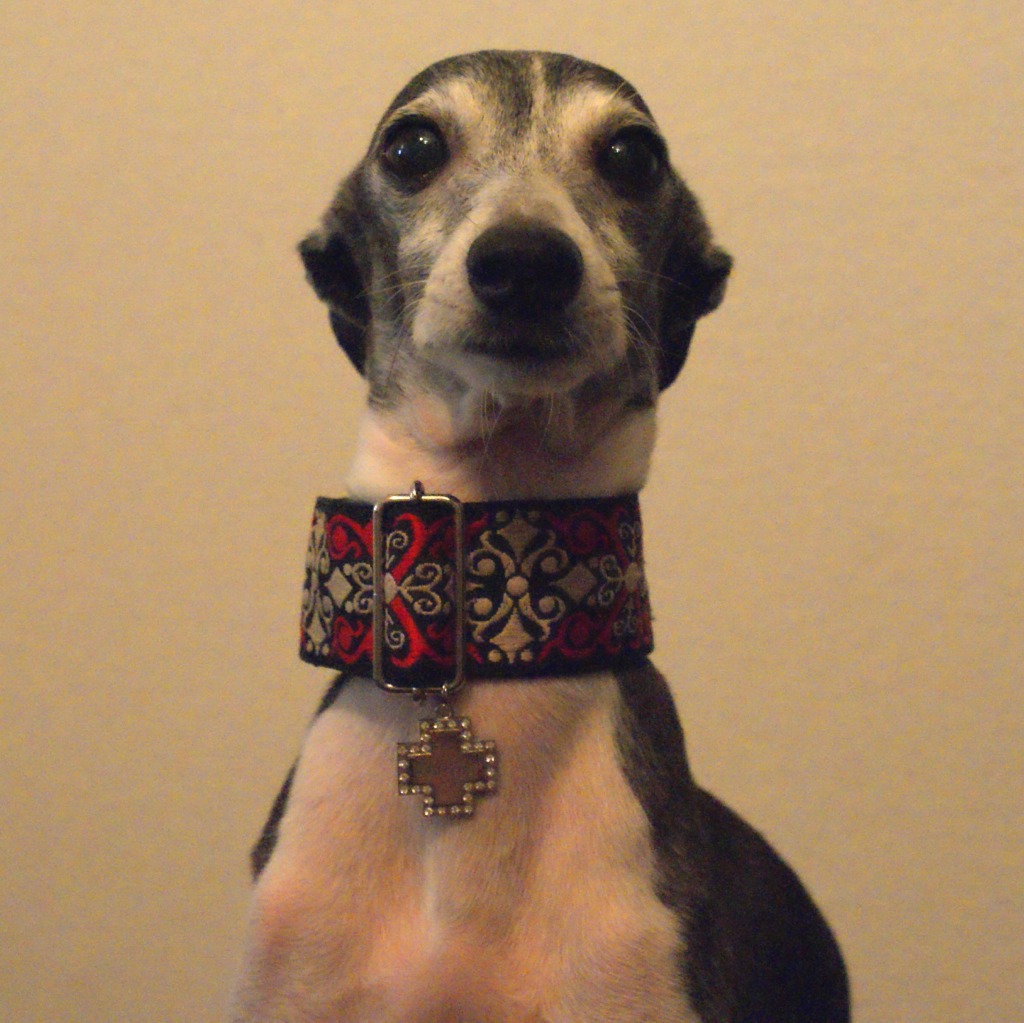 こないだ作ってもらった迷子札もつけてみた(^J^)