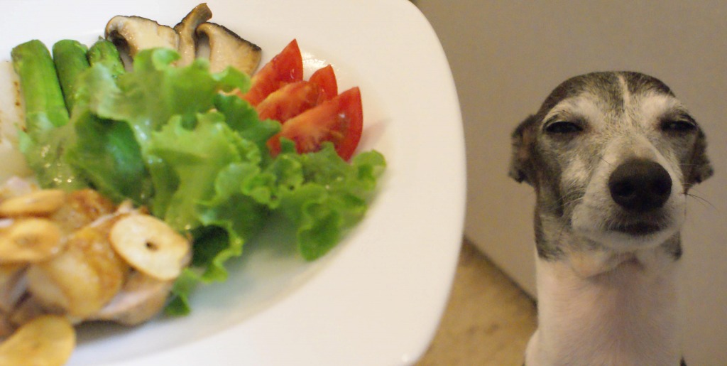 食後(犬の)、部屋中に散らばるレタスの破片を拾って歩いた私…