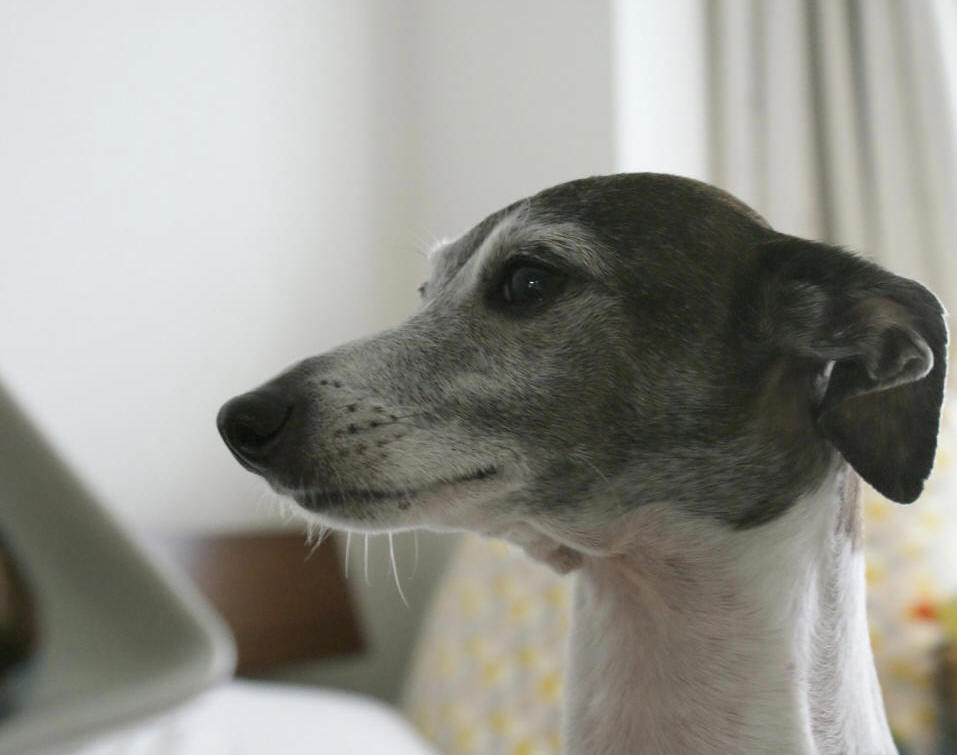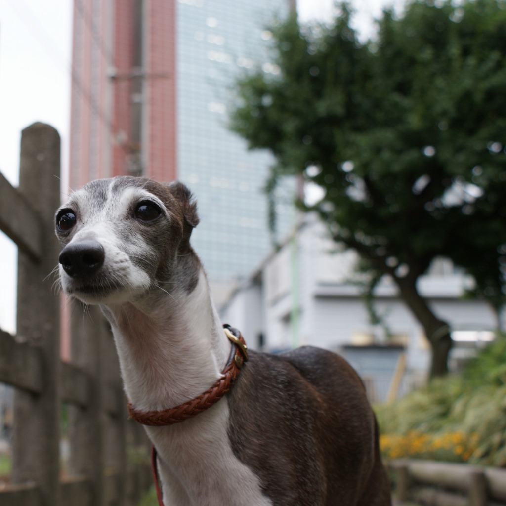 Vivo con un galgo italiano. El nombre de mi perro es Porcini.(^o^)