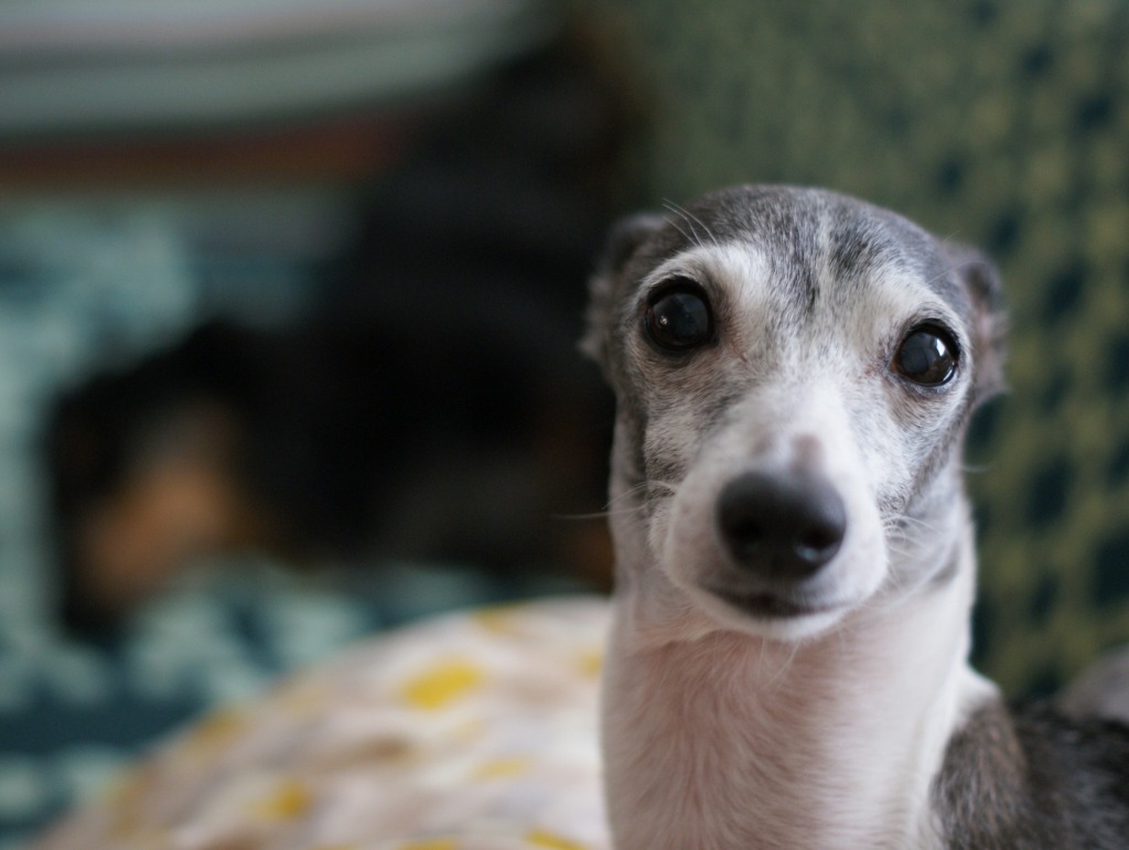 Vivo con un galgo italiano. El nombre de mi perro es Porcini.(^o^)
