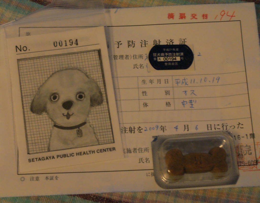 狂犬病注射済証も貰ってきた。