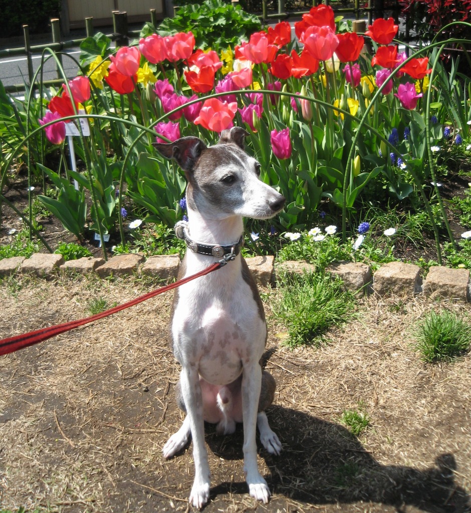 Vivo con un galgo italiano. El nombre de mi perro es Porcini.(^o^)