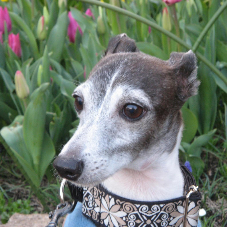 Vivo con un galgo italiano. El nombre de mi perro es Porcini.(^o^)