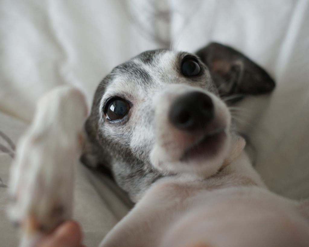 Vivo con un galgo italiano. El nombre de mi perro es Porcini.(^o^)