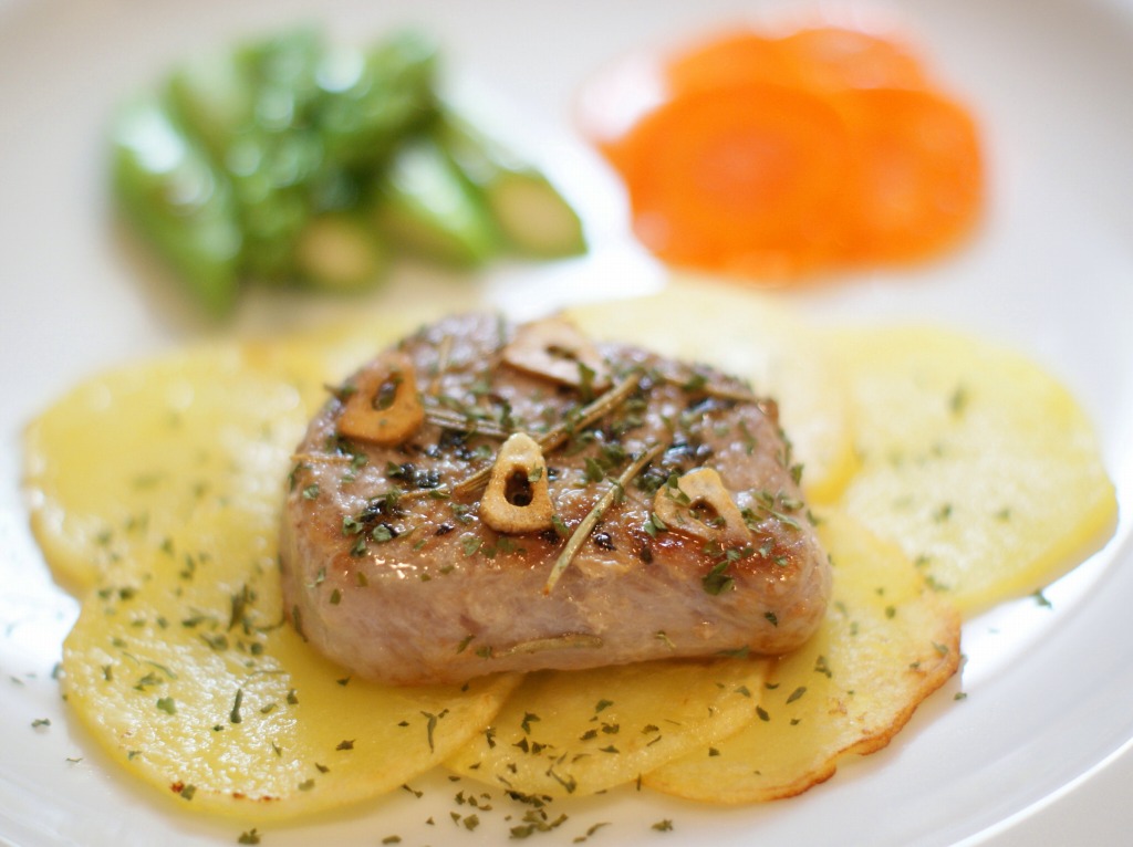 豚ヒレのステーキと焼き野菜。
