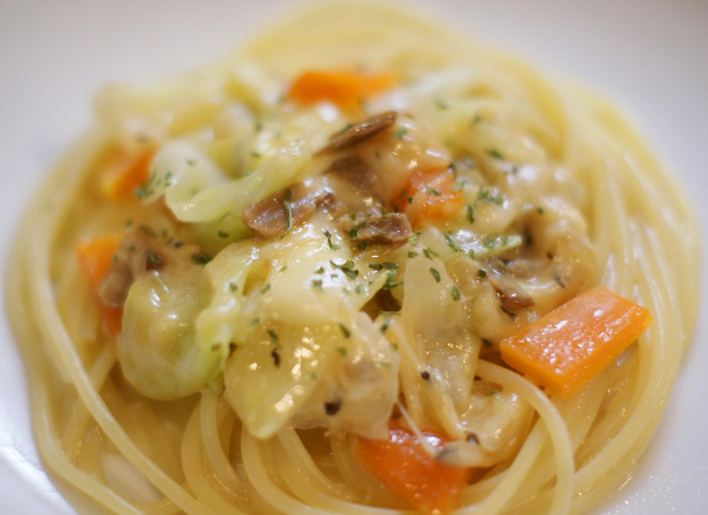 エダムとエメンタールチーズとポルチーニ茸のスパゲティ。