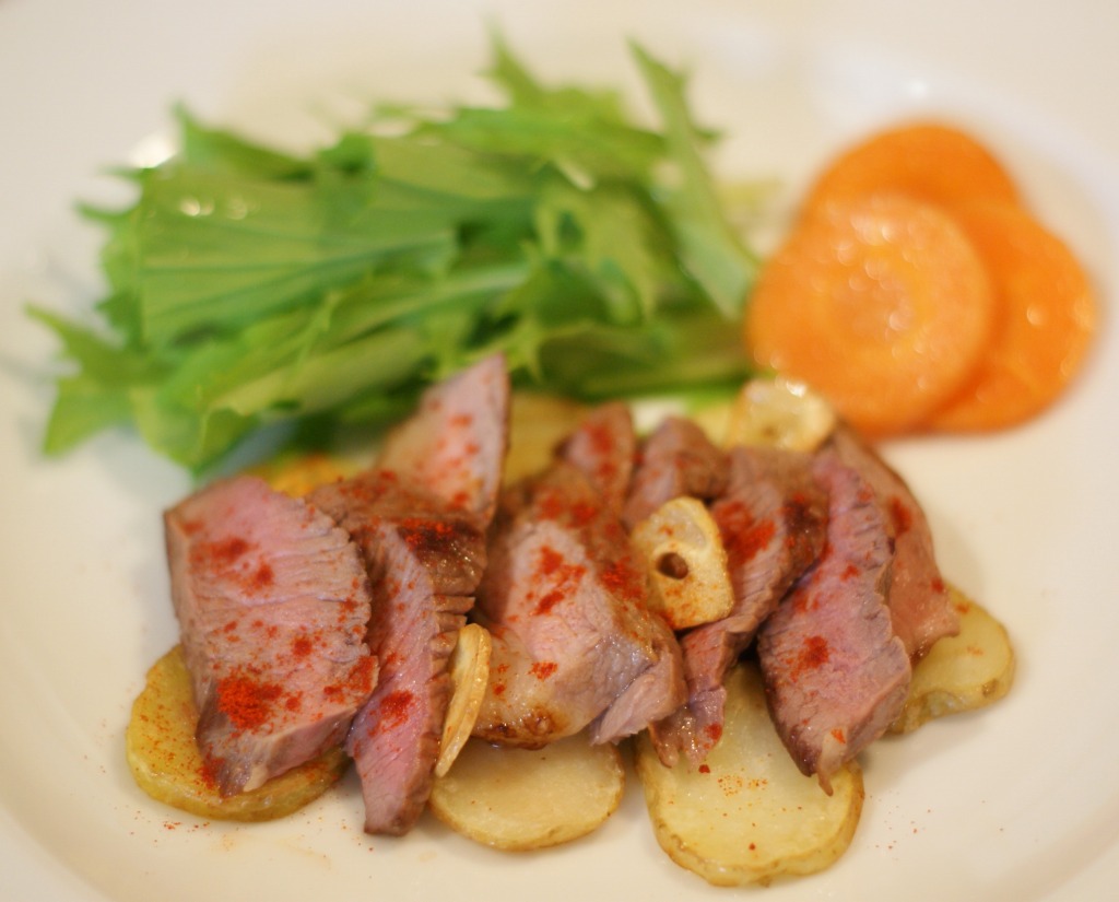 ラムステーキ (見た目だけPulpo a la gallega風にしてみた。)