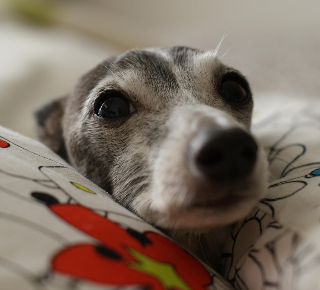 Vivo con un galgo italiano. El nombre de mi perro es Porcini.(^o^)